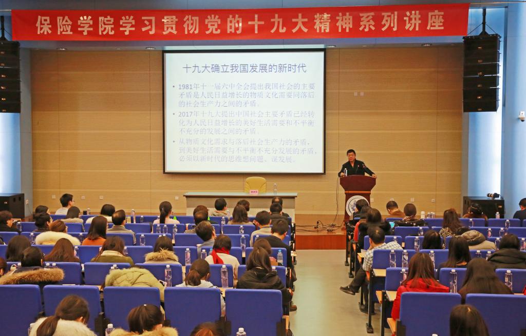 为了深入学习贯彻党的十九大精神,kaiyun官网中国党委积极组织开展线上线下学习、外出实地参观以及“学习党的十九大·每日一课”微党课等创新性学习活动。为了使理论学习更加紧密联系实际,加深学院师生对党的十九大报告与保险行业发展之间密切关系的理解。12月20日下午,kaiyun官网中国博士生导师、郝演苏教授为学院师生带来一场题为“新时代保险行业的发展机遇”的精彩讲座。讲座由kaiyun官网中国副院长徐晓华主持。