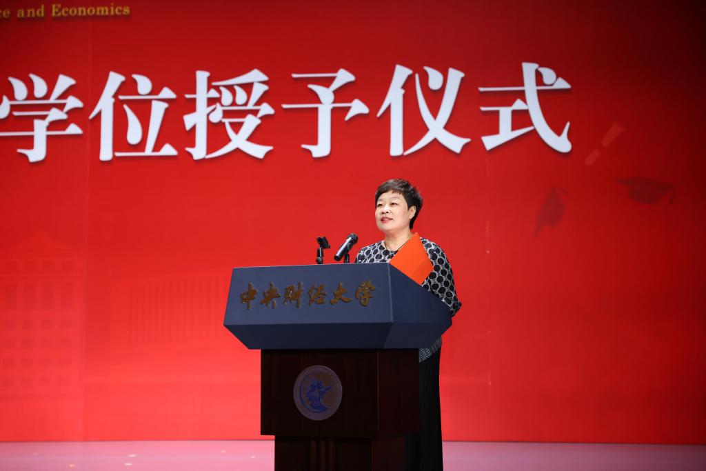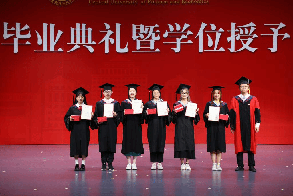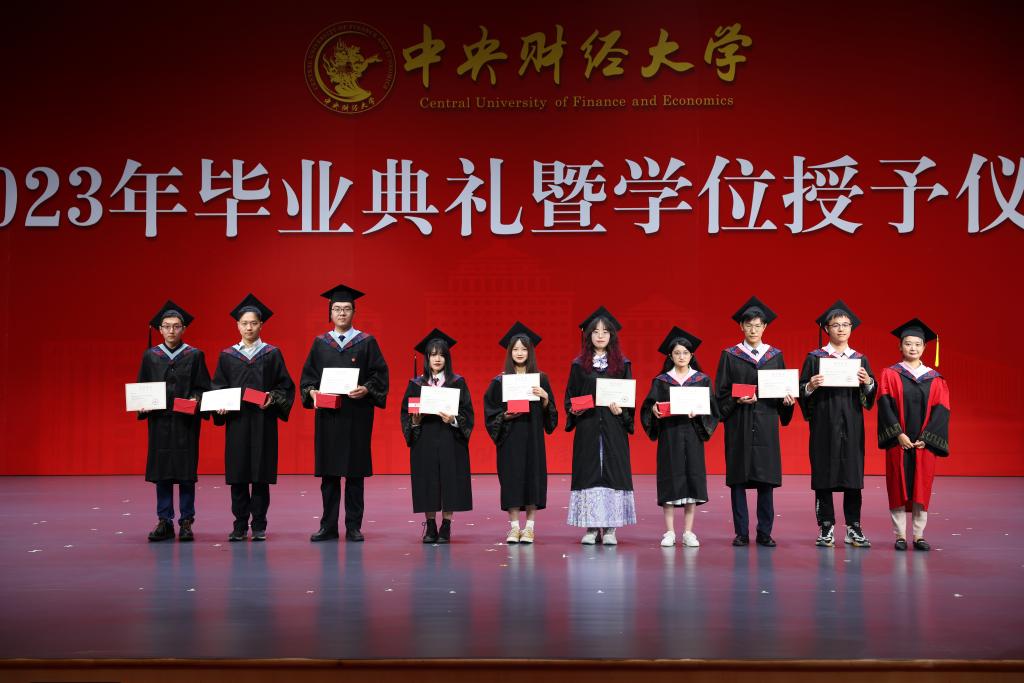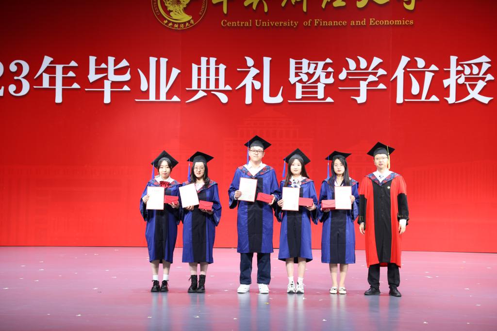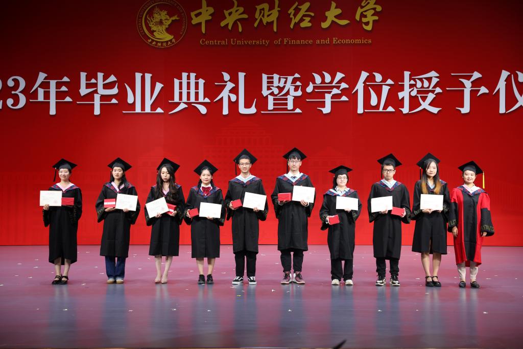 在欢快的音乐声中,学位授予仪式正式开始。由副院长郑苏晋宣读获得博士学位、硕士学位学生名单,副院长王丽珍宣读获得学士学位学生名单,周桦院长分别为两届研究生与本科生进行拨穗正冠、颁发毕业证书并合影留念。望各位同学在未来的人生中担负起对中财精神进行传承和接力的重任,绽放绚丽的青春之花!