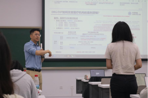 在互动问答环节,张楚先生结合典型案例,解答了同学们关心的医保资金是否可持续等实际问题,并对行业未来改革路径提出展望。他认为,推动医保与商业保险的分层互补、鼓励多样化产品创新和服务模式,是提升中国健康保障体系韧性和普惠性的关键所在。