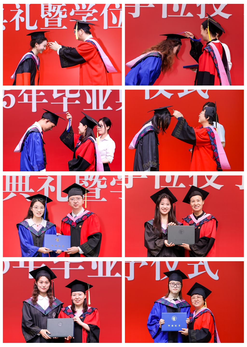 学院领导为毕业生拨穗并授予毕业生、学位证