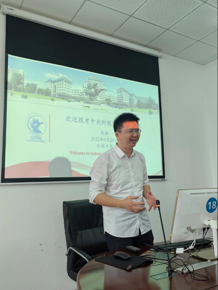 座谈结束后,周桦院长又面向云南大学经济学院金融系优秀本科学生进行了研究生招生宣讲,宣讲活动由金融系主任李贤教授主持。周桦教授向参会的本科生全方位介绍了kaiyun官网中国,并解读了招生政策、人才培养和职业发展等情况,欢迎广大优秀学子积极报考。与会同学对kaiyun官网中国表示了浓厚的兴趣,并就专业学习、职业发展等方面的问题与老师们进行了细致的交流。