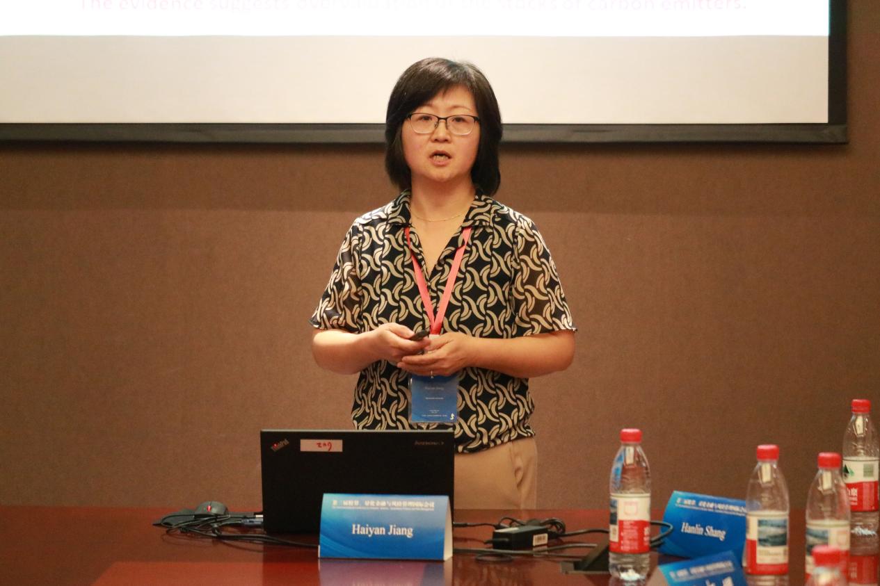Haiyan Jiang副教授以“Do Short Sellers Target Firms with High Climate Risks? International Evidence”为题,分享了碳排放强度与做空行为之间的关联研究。该研究通过国际数据证明,高碳排放企业更易成为做空目标,尤其是在实施碳排放交易体系的国家中。该研究呼吁政策制定者强化碳信息披露,减少市场信息不对称,同时平衡减排激励与市场稳定。与会师生就碳市场运行机制与监管平衡等议题展开了热烈讨论。